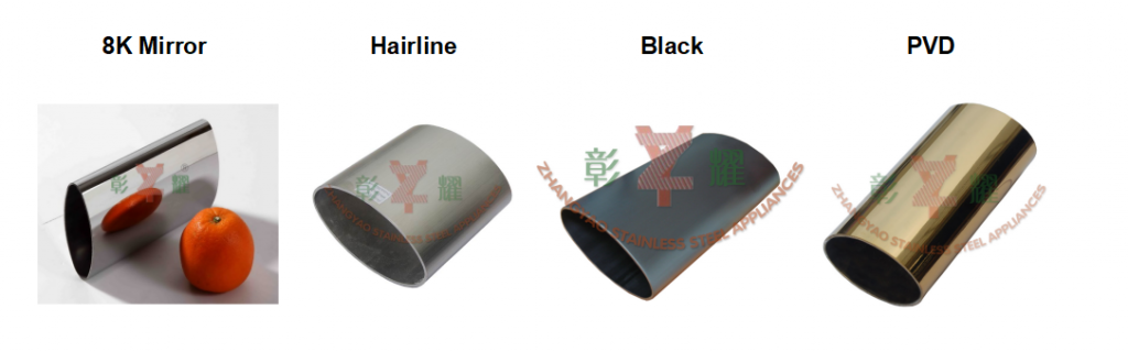 - Surface: Satin, 8K Super Mirror, Black, PVD